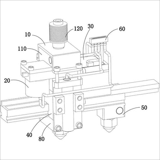 ![]() [0001] 技术领域 [0002] 本发明涉及一种3D打印机,特别涉及一种多轴式3D打印机。 [0003] 背景技术 [0004] 3D打印是添加剂制造技术的一种形式,在添加剂制造技术中三维对象是通过连续的物理层创建出来的;3D打印机相对于其他的添加剂制造技术而言,具有速度快,价格便宜,高易用性等优点;3D打印机功能上与激光成型技术一样,采用分层加工、迭加成形,即通过逐层增加材料来生成3D实体,与传统的去除材料加工技术完全不同。 [0005] 现有的3D打印机只能进行单头式打印,其功能单一,不能完成多个重复性图案的一次性打印。 [0006] 发明内容 [0007] 为解决现有技术的不足,本发明的目的是提供一种可一次性打印多个重复图案的3D打印机,并且多个挤出头之间的跨距可调,并且还可以定向的接通需要工作的挤出头。 [0008] 为实现上述技术目的,本发明所采用的技术方案如下。 [0009] 一种高精度多轴式3D打印机,其包括可产生熔融态原料或者接收熔融态原料的换向管、与换向管底部排料端连接的分流板,所述的换向管可绕自身轴线转动,换向管的底部端板上开设有连通其内腔并且呈弧形结构的分料槽,分流板朝向换向管的端面上开设有第一分流孔、第二分流孔,换向管绕自身轴线转动的过程中,分料槽可依次与第一分流孔、第二分流孔接通,并且第一分流孔、第二分流孔可通过分料槽接通; [0010] 分流板的底部还设置有可接收分流板排出的熔融态原料的引导机构; [0011] 所述的引导机构包括引导支撑体、与引导支撑体固定连接并且沿水平方向延伸设置的导轨,引导支撑体上设置有与第一分流孔相接通的第一连通孔、与第二分流孔相接通的第二连通孔,引导支撑体上还设置有沿导轨导向方向并穿设于引导支撑体表面的引导槽,在竖直方向上导轨的底部平面高于引导支撑体的底部平面,第二连通孔的底部排料端穿设于导轨的底部平面,第一连通孔的底部排料端穿设于引导支撑体的底部平面;引导支撑体的下方连接有可接受自第一连通孔流出的熔融态原料的第一挤出机构,引导支撑体上还滑动连接有可沿导轨导向方向运动并且可接受自第二连通孔流出的熔融态原料的第二挤出机构; [0012] 上述的第一挤出机构包括与引导支撑体底部平面相固定的第一挤出支撑体,第一挤出支撑体上设置有与第一连通孔相接通并且可接受自第一连通孔流出的熔融原料的第一熔流道,第一挤出支撑体的底部还安装有与第一熔流道的排料端相接通的第一挤出头; [0013] 上述的第二挤出机构包括与导轨滑动连接并且穿设于引导槽的蓄料支撑体,蓄料支撑体上设置有沿导轨导向方向布置并且相互接通的蓄料槽、推料槽,且推料槽设置于蓄料槽的底部,并且蓄料槽、推料槽构成的槽体与导轨的导向平面相匹配并且该槽体的截面呈T型结构,蓄料支撑体朝向导轨悬置端的一侧设置有用于导轨穿过的避让孔,自第二连通孔流入的熔融态原料可流入至推料槽内,蓄料支撑体朝向导轨的悬置端一侧设置有第二挤出头,并且推料槽朝向导轨悬置端的一侧设置有与第二挤出头内腔接通的第二熔流道。 [0014] 更优地,换向管连接于第一动力供应机构的动力输出部件a,第一动力供应机构还包括与动力输出部件a连接并且可接收旋转力并将旋转力传递至动力输出部件a的动力接收部件a,由动力输出部件a驱动换向管绕自身轴线的转动。 [0015] 更为完善地,第一动力供应机构包括驱动电机a、动力接收部件a、齿条a、动力输出部件a,动力接收部件a、动力输出部件a均为直齿轮,动力接收部件a设置于驱动电机a的输出端并且用于接收驱动电机a输出的旋转力,动力输出部件a固定套接于下管体的外部,动力接收部件a、动力输出部件a均与齿条a相匹配,齿条a用于接收动力接收部件a提供的动力并将动力传递至动力输出部件a。 [0016] 更优地,第一挤出支撑体的底部还设置有用于安装第一挤出头的第一安装座,并且第一安装座的内腔与第一熔流道接通。 [0017] 更为优化地,第一安装座的外表面设置有外螺纹,第一挤出头上设置有与第一安装座上的外螺纹相匹配的内螺纹。 [0018] 更优地,蓄料支撑体还连接有用于驱动其沿导轨导向方向运动的第二动力供应机构,第二动力供应机构包括与蓄料支撑体相固定并且沿导轨导向方向延伸设置的齿条b、与齿条b相匹配并且可驱动齿条b沿导轨导向方向滑动的动力输出部件b、接收旋转力并且可向动力输出部件b传递旋转力的动力接收部件b。 [0019] 更为具体地,上述的第二动力供应机构还包括驱动电机b、齿轮b,动力接收部件b、动力输出部件b均为直齿轮,动力接收部件b安装于驱动电机b的输出端部并且可接收电机b提供的旋转力,动力接收部件b与齿轮b相啮合并且用于传递旋转力,动力输出部件b与齿轮b共轴线连接并且同步运动,动力输出部件b与齿条b相啮合并且驱动齿条b沿导轨的导向方向运动。 [0020] 多轴D打印机的单喷头打印或者多喷头同步打印的方法,其方法包括: [0021] S1:换向管接收或者产生熔融态原料,并且控制换向管绕自身轴线旋转的角度;换向管底部排料端连接有分流板,换向管的底部端板上开设有连通其内腔并且呈弧形结构的分料槽,分流板朝向换向管的端面上开设有第一分流孔、第二分流孔,换向管绕自身轴线转动的过程中,分料槽可依次与第一分流孔、第二分流孔接通,并且第一分流孔、第二分流孔可通过